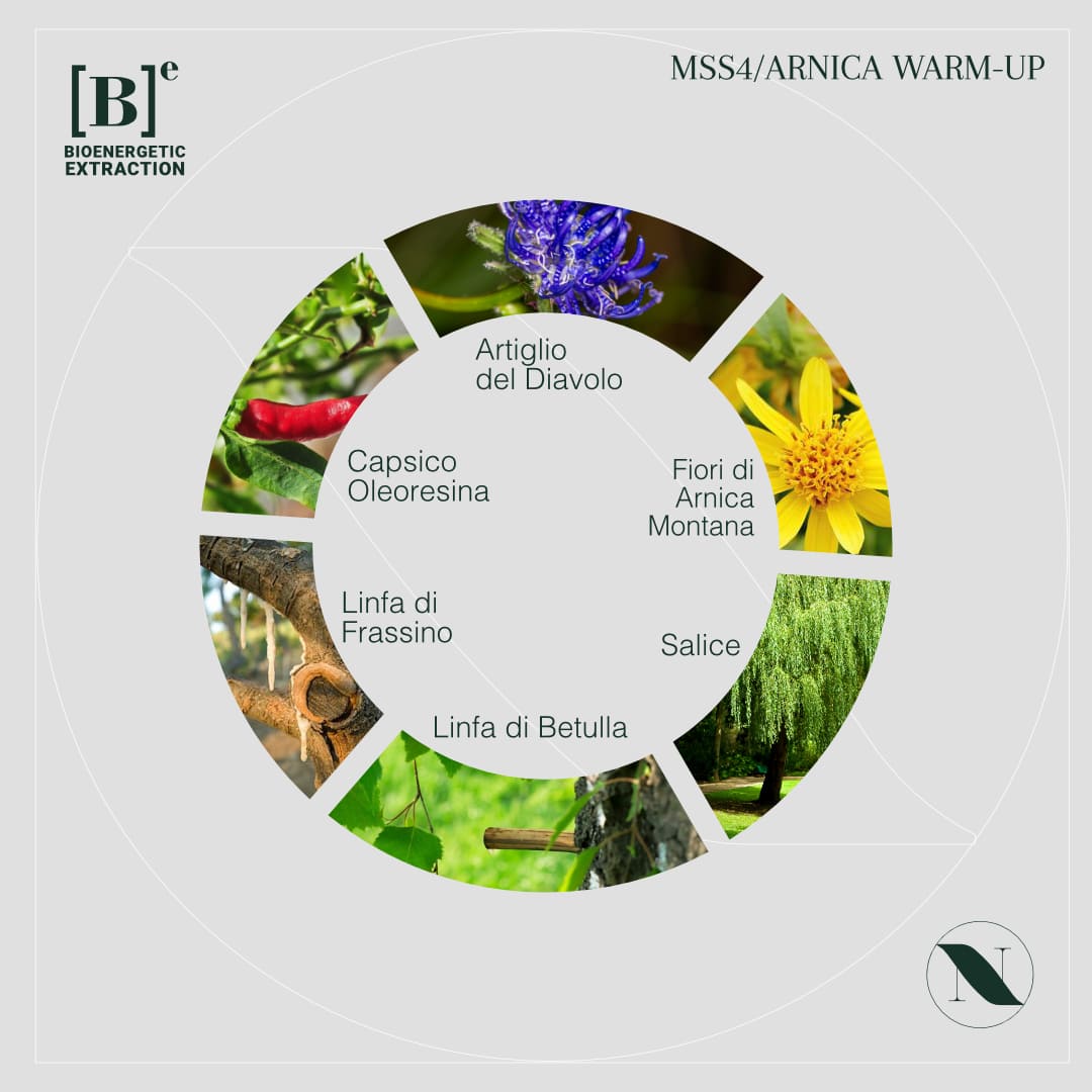 MSS4/ARNICA WARM-UP, with a warming effect, is ideal for preparing the muscles for sporting activity, reducing the risk of joint injuries and muscles, improving performance and physical endurance capabilities. Also suitable for those who do not practice sports, but suffer from muscle stiffness or want to relieve some muscular pain conditions. The warming effect is modulated and persistent based on the ongoing muscular activity.